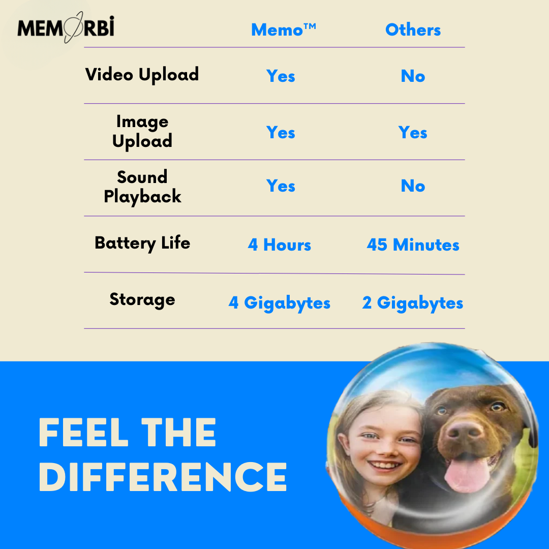 Whether it's a shared laugh, a wagging tail, or a quiet moment that changes everything, Memo™ Memory Sphere brings it all back.
